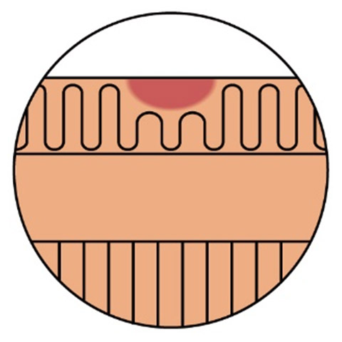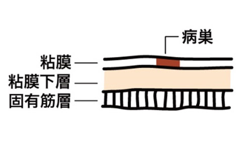 特殊な電気ナイフで早期がんの周りと粘膜下層という病変の下を剥離していく治療で入院が必要になります。