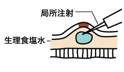 局注粘膜下層に生理食塩水を注入して浮かせた状態にする