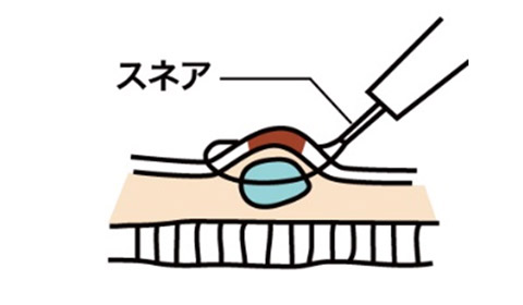 ポリープ下に生理食塩水などの液体を注入しポリープを挙上させてスネアで切除します。
