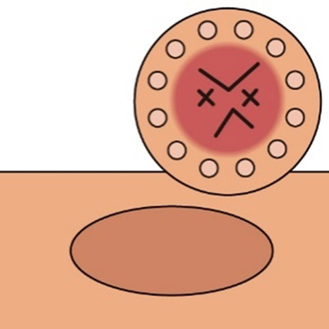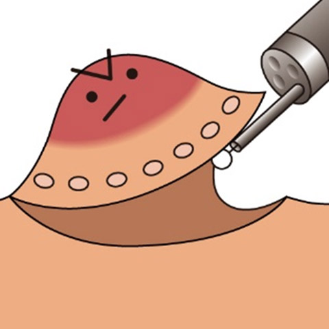 マーキング病変の周囲に切り取る範囲の目印をつける